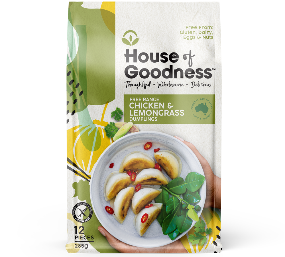 Ingredients: Free-Range Chicken, Cabbage, Filtered Water, Rice Flour, Onion, Tapioca Flour, Glutinous Rice Flour, Shallot, Sunflower Oil, Lemongrass, Millet Flour, Xanthan Gum, Sea Salt, Potato Starch, Gluten-Free Soy Sauce, Pepper.