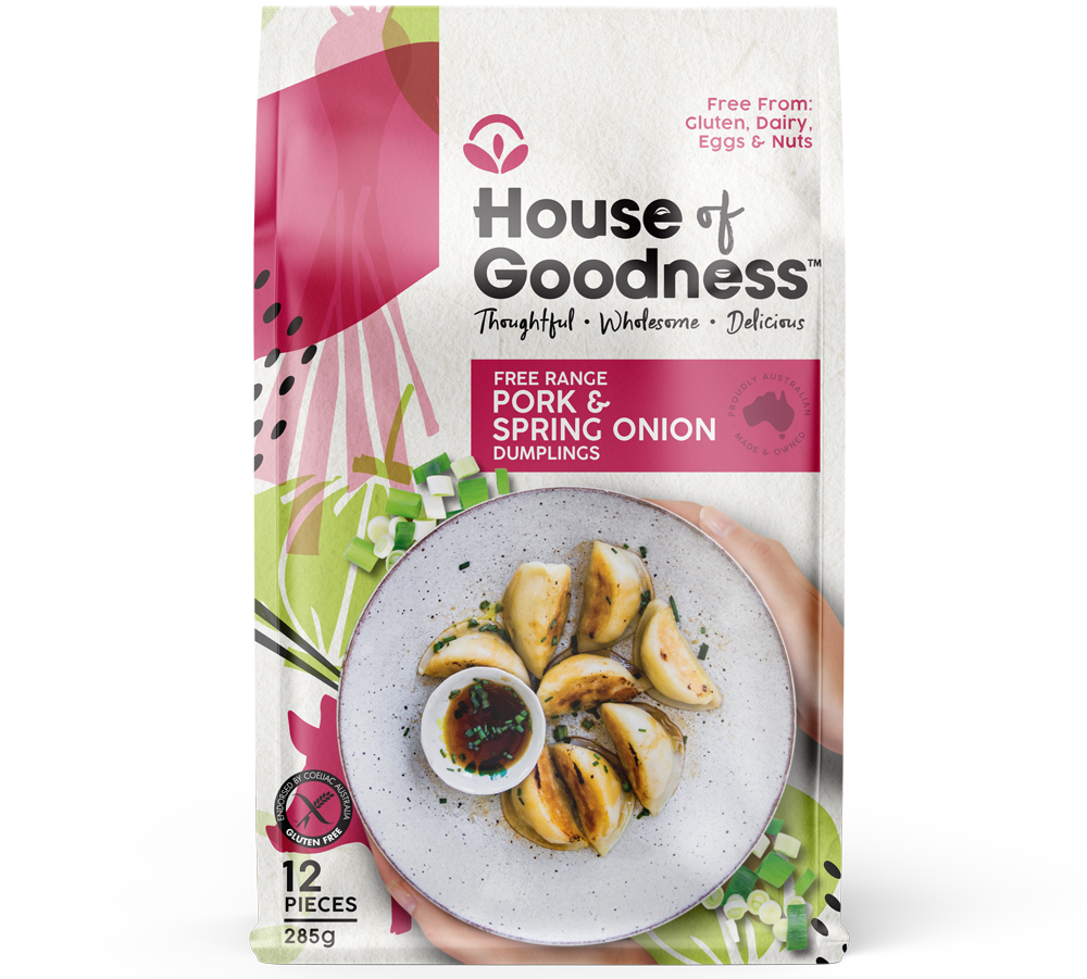 Ingredients: Free-Range Pork, Cabbage, Filtered Water, Rice Flour, Onion, Tapioca Flour, Glutinous Rice Flour, Spring Onion, Millet Flour, Sunflower Oil, Xanthan Gum, Sea Salt, Potato Starch, Gluten-Free Soy Sauce, Pepper.